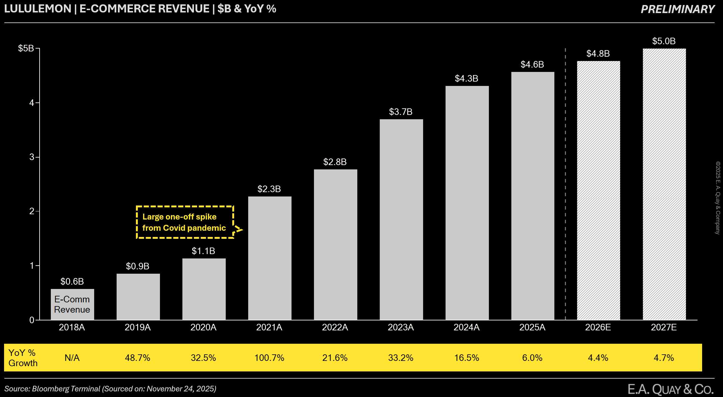 Bottom line: The market has been fighting the last war, focusing on past challenges (Mirror, supply chain hiccups, etc.) and missing the current reality of LULU’s accelerating global business and strategic agility. This misalignment between perception and reality sets the stage for significant upside, as we expect the narrative to catch up to the facts in coming quarters. Our report next quantifies just how stark Lululemon’s undervaluation has become in light of these misperceptions.